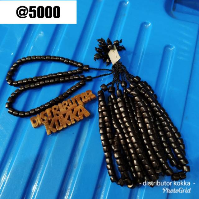 Jumlah butiran kayu kokka 33 butir Motif butiran bulat Warna hitam Mempunya fungsi ganda untuk aksesoris dan berdzikir Harga Rp 95 000