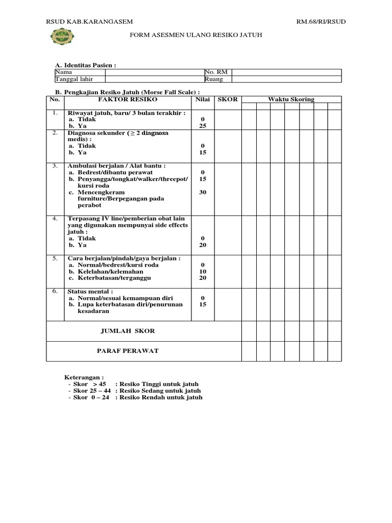 Format Pengkajian Resiko Jatuh Sumber : www.scribd.com